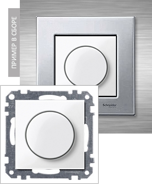 Светорегулятор поворотный для управления одной линией освещения. Максимальная нагрузка - 1000 Вт. Используется для ламп накаливания и галогеновых ламп 220В, а также для обмоточных трансформаторов на 12В. Требуется подключение нейтрали. Плавное включение, обеспечивающее щадящий режим работы ламп. Электронная защита от короткого замыкания. Автоматическая защита от перегрева с последующим самозапуском при охлаждении. Двухфункциональный принцип действия: нажатие на ручку включает/выключает свет, вращение ручки увеличивает или уменьшает яркость.