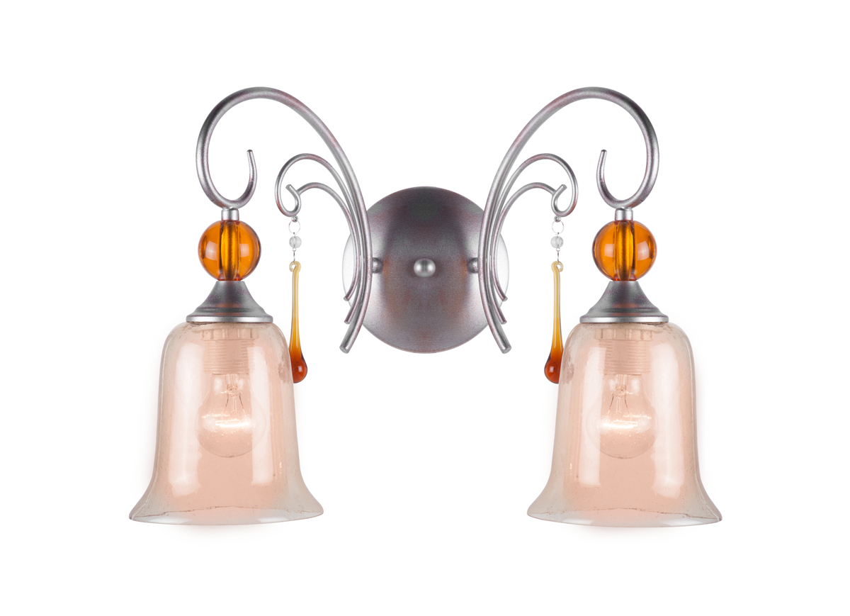 Donolux Classic бра двухрожковое, плафоны стекло янтарного цвета, подвески крашеное стекло, шир 41 см, выс 34,5 см, 2хE27 60W, цвет арматуры античное